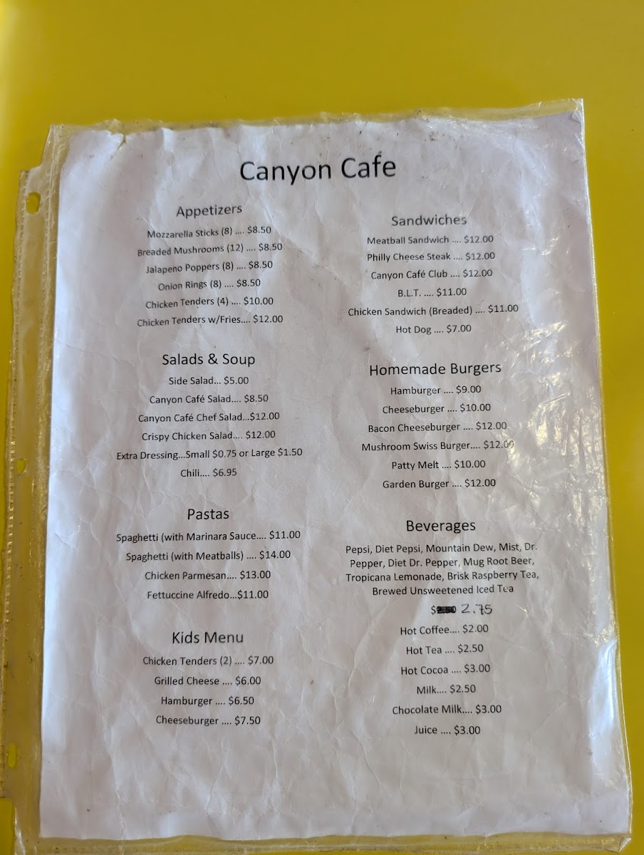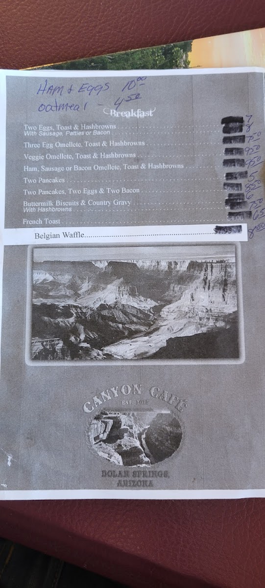 Introducing Canyon Cafe, a hidden gem nestled at 16064 Pierce Ferry Rd, Dolan Springs, AZ. This diner-style establishment is perfect for travelers seeking a hearty meal amidst their journey to the Grand Canyon. The menu showcases a delightful range of options, from fresh salads like the Canyon Café Chef Salad to savory sandwiches, including the crowd-favorite Philly Cheese Steak and Canyon Café Club. Guests rave about the delicious bacon cheeseburger, often cited as one of the best they've had for the price.